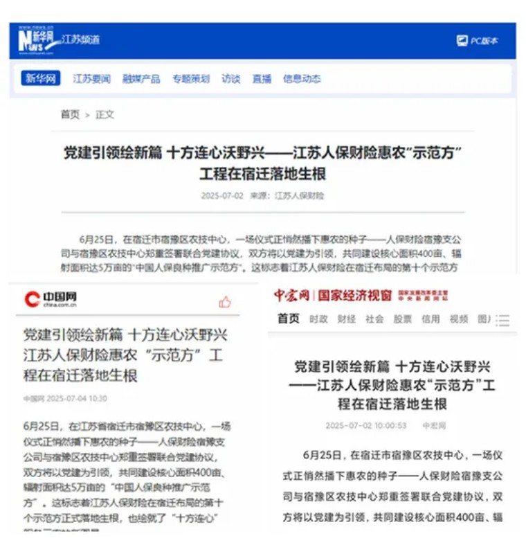 近日,人保财险在宿迁布局的第十个示范方正式落地生根,接连被新华网、中国网、中宏网等多家主流媒体转发宣传。