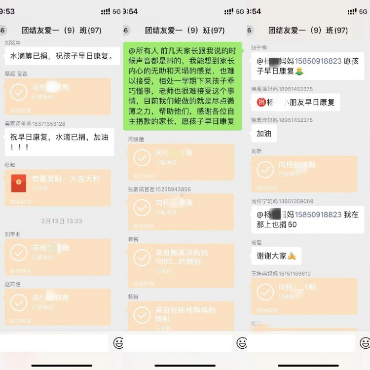 与此同时,为了让爱心传递更加便捷高效,不少家长自发行动起来,充分利用班级群、公益平台,甚至通过私人转账等方式踊跃捐款。一笔笔饱含着牵挂与祝福的善款,跨越空间的距离,源源不断地汇聚而来,为这个陷入困境的家庭注入了希望的暖流。
