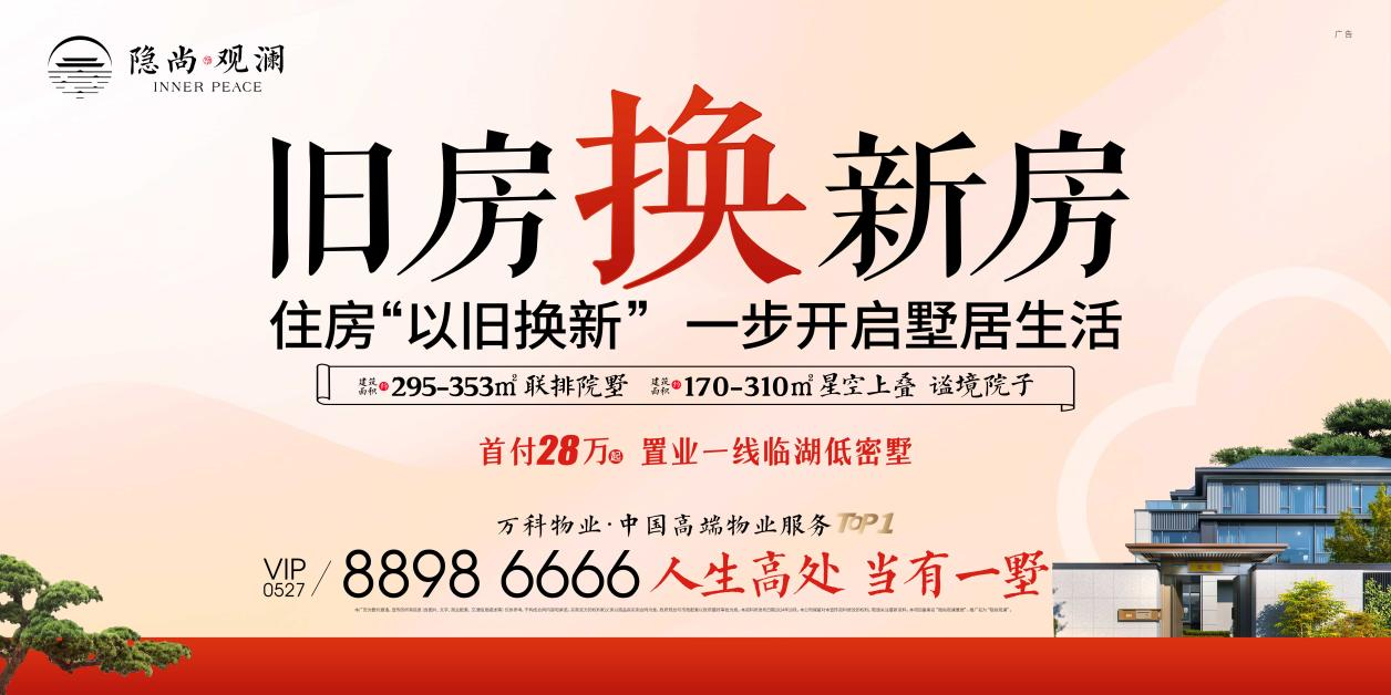隐尚观澜,湖滨新区核心版块一线临湖低密墅,首付28万起,即可拥有170-310㎡星空上叠和静谧院子,还有限时的房屋以旧换新服务,助您轻松开启墅居生活。