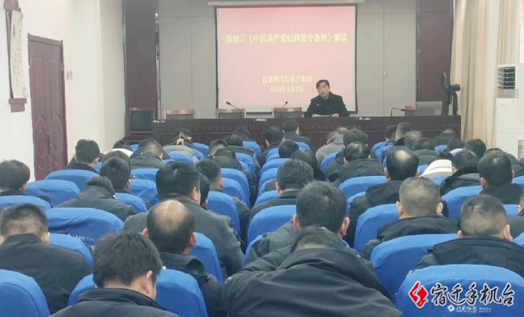 新年伊始,为筑牢拒腐防变思想防线,营造风清气正、干事创业的良好政治生态,在2024年首个工作日,仓集现代农业产业园组织开展廉政教育培训会,开启廉政教育新年“第一课”,教育引导园区党员干部坚守廉洁底线,严守纪律规矩。洋河新区纪工委审理室主任兼教育办纪委副书记徐宜涛到会指导,仓集现代农业产业园党委副书记朱祥林主持此次会议,园区领导班子成员及全体工作人员、各村支部书记、各村纪检委员参加了此次会议。