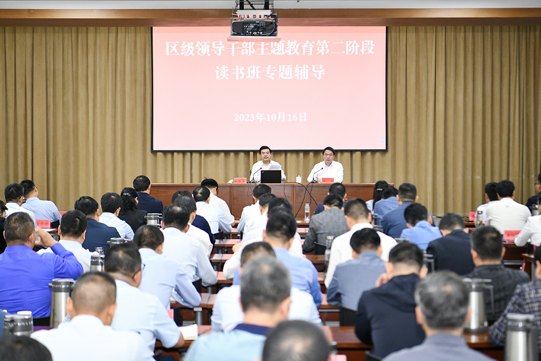 10月16日下午,区级领导干部学习贯彻习近平新时代中国特色社会主义思想主题教育读书班举行第二场专题辅导。区委书记陈伟主持读书班并讲话。区委副书记、区长顾宇等出席。