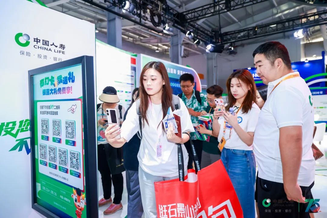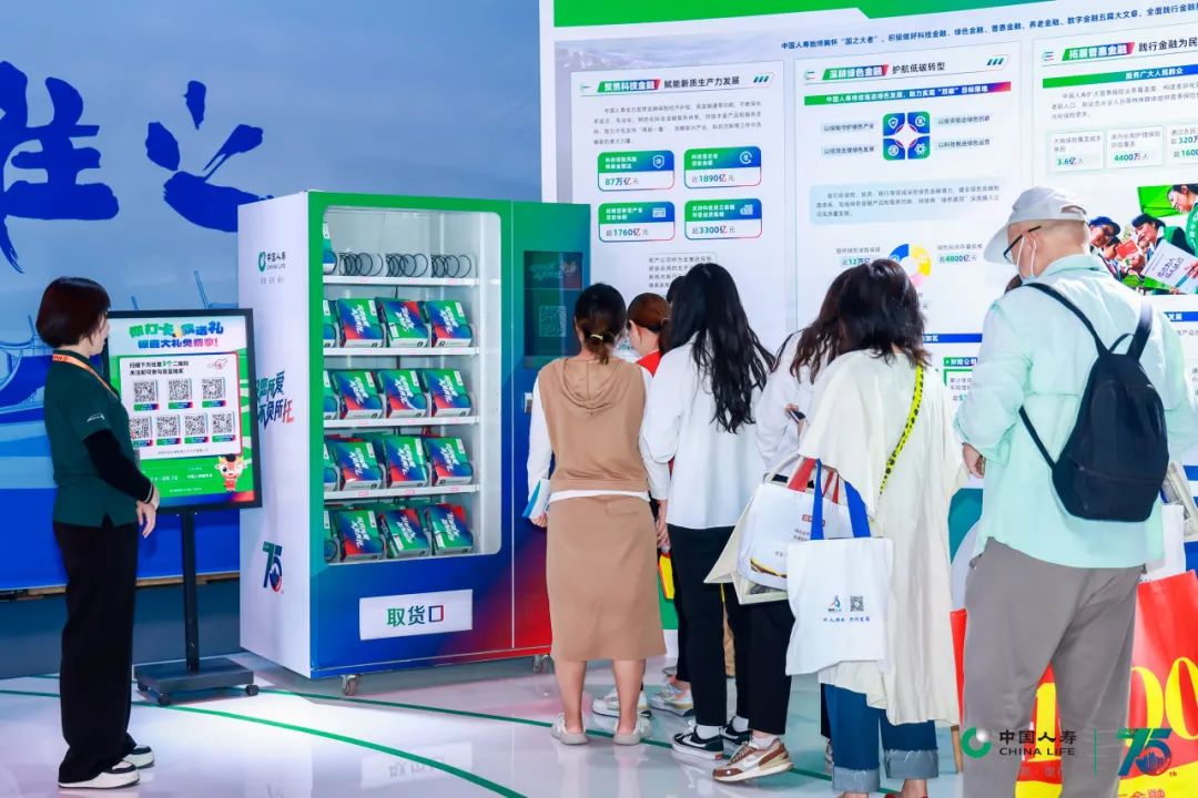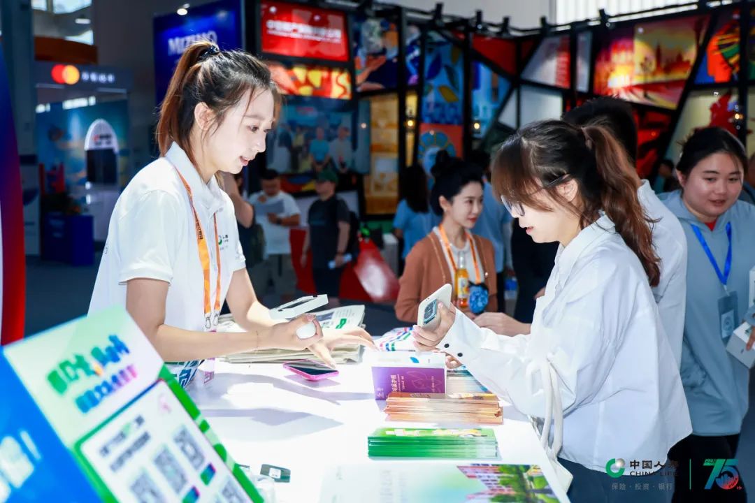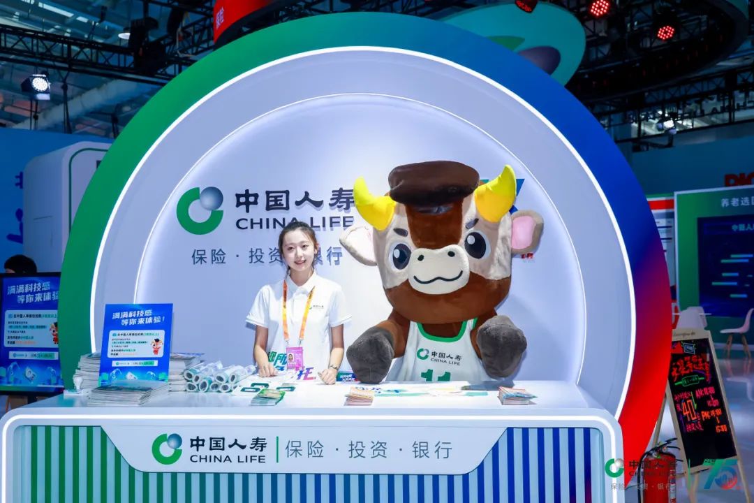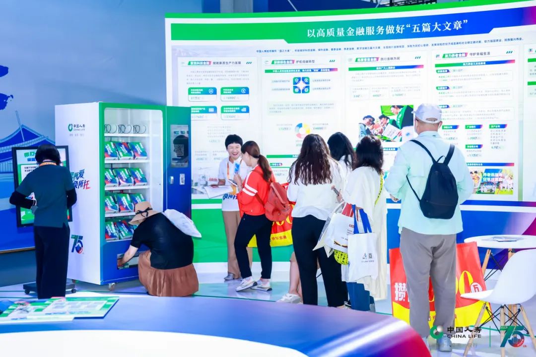 中国人寿展台以代表保险板块的绿色、代表投资板块的蓝色、代表银行板块的红色为主色调,围绕“服务国家发展大局 守护人民美好生活”主题,设置“75周年与国同生,与国共荣”“以高质量金融服务做好五篇大文章”“实干笃行 服务国之大者”“以人民为中心 守护美好生活”等板块,积极展现公司发挥行业头雁作用,汇聚综合金融优势,一体化发展取得的各项成果。