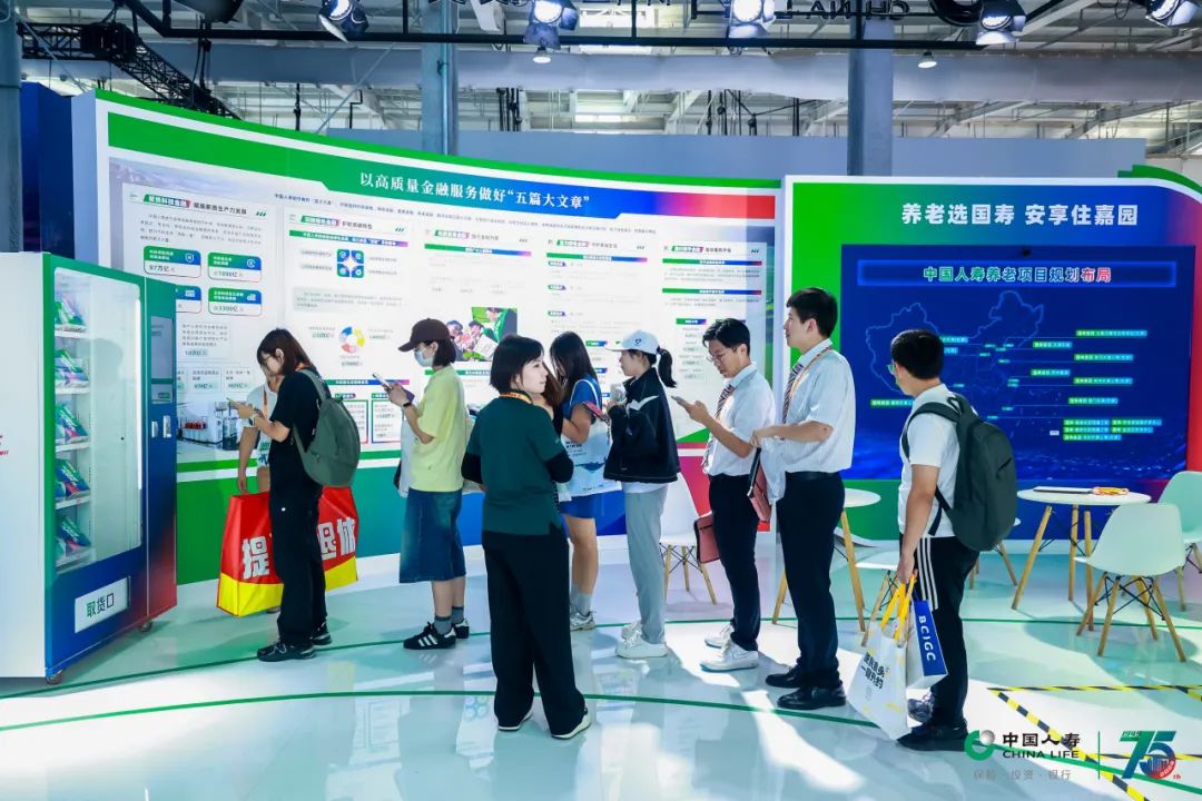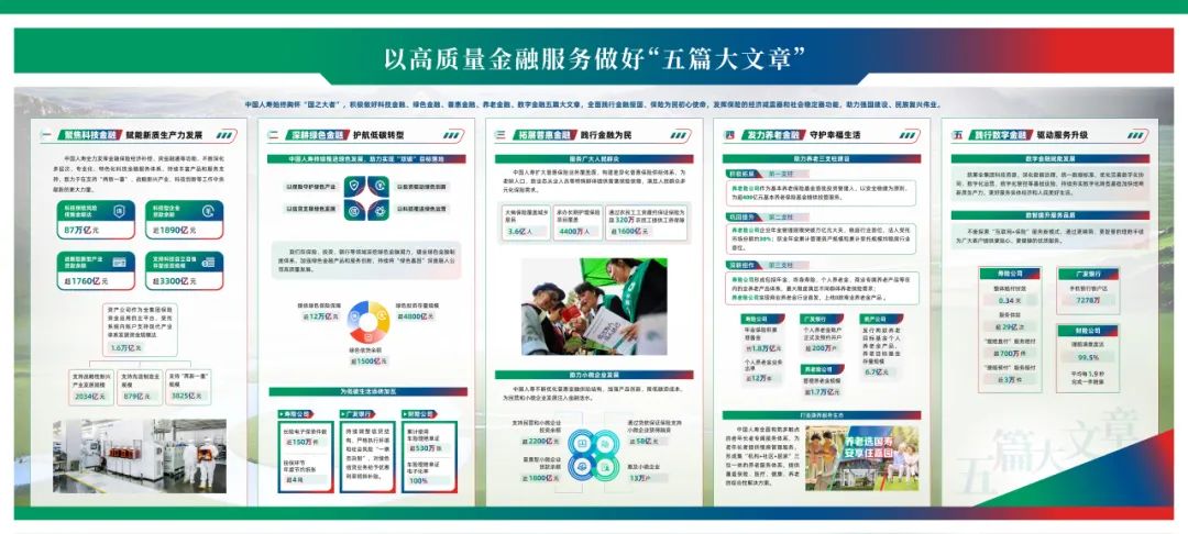 展区集中展示了中国人寿在科技金融、绿色金融、普惠金融、养老金融、数字金融五个领域的实践成果与未来展望。每一篇“文章”都承载着中国人寿服务国家发展大局、守护人民美好生活的初心和使命。