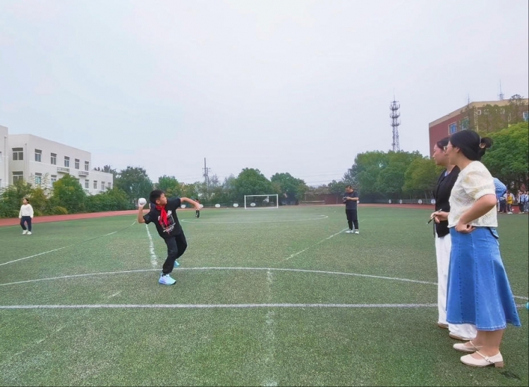 运动场上,立定跳远与垒球项目格外热闹,处处洋溢着为祖国庆生的热情。参加立定跳远的学生们卯足力气奋力一跃,身体在空中划出灵动优美的弧线,落地瞬间扬起些许红色塑胶颗粒,那跳跃的身影,是青春力量的迸发,更是对祖国蓬勃发展的美好呼应;