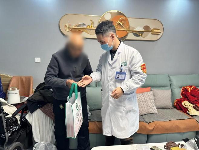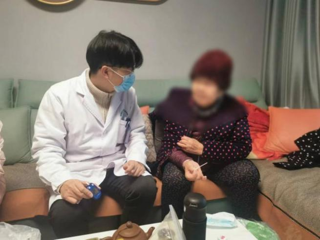 家住牡丹园小区的苏大妈和老伴朱大爷,今年80岁高龄,子女在外工作生活,不能时常陪伴左右。苏大妈患有高血压和糖尿病5年余,平时自行服用降压降糖药、注射胰岛素,因腿脚行动不便,无法定期至医院复诊。了解到这一情况后,园区社区卫生服务中心医务人员联合阳澄社区党总支工作人员上门为其监测血压、血糖及其他健康体检,根据苏大妈的血压/血糖控制情况、生活饮食及服药情况,制定个性化健康指导方案,实行动态健康管理,并与其签约家庭医生,发放就诊卡和日常护理包。