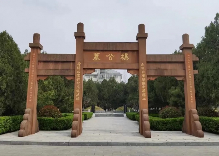 陵园内牌坊两侧有一幅对联,上联是:血洒台湾,誓保中华疆土;下联是:骨归故里,共钦民族英雄。这是将军一生光辉写照。