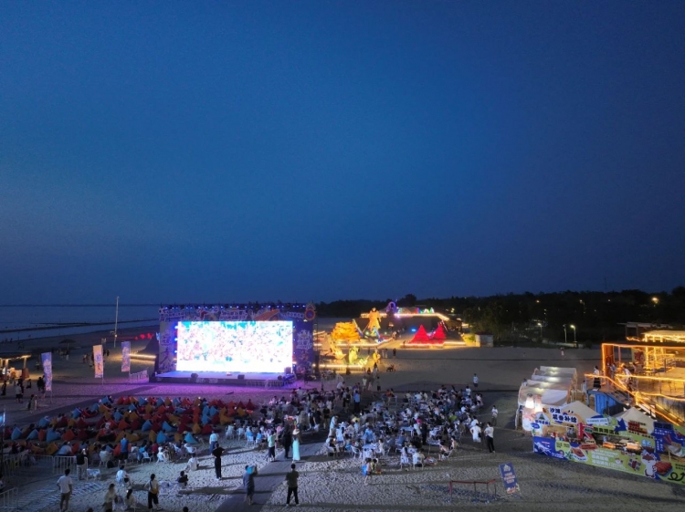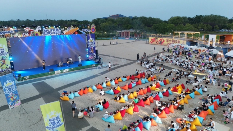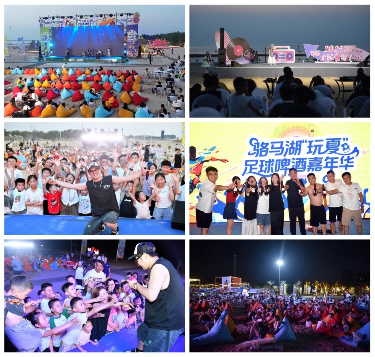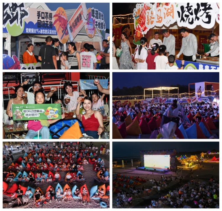 奥体中心酒香四溢,骆马湖沙滩公园推出的骆马湖玩夏足球啤酒嘉年华活动也热闹非凡。细软的沙滩上,大型LED屏幕实时播放赛事盛况,本土民谣乐队和动感DJ轮番献艺,全民K歌大赛吸引众多游客登台献唱,欢呼声、歌声与掌声此起彼伏;星辰国际酒店的厨师们现场烤制的羊肉串滋滋作响,冰镇骆马湖牌啤酒的清爽与小龙虾的麻辣在舌尖碰撞……在这里,民谣与电音交织,烧烤共啤酒飘香,K歌同呐喊飞扬,足球的激情与夏日的狂欢在骆马湖畔绽放出最动人的光彩。