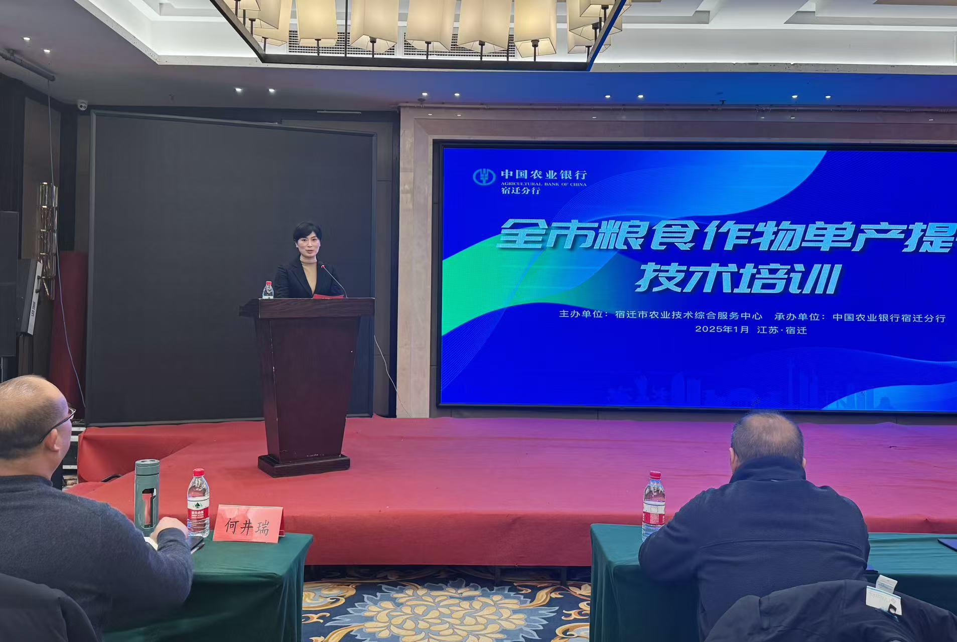 为认真践行金融工作的政治性、人民性,充分发挥产品、科技、资金、渠道等综合金融服务优势,满足粮食种植领域多元化融资需求,近日,农行宿迁分行携手宿迁市农业农村局联合举办全市粮食作物单产提升技术培训,农行宿迁分行党委委员、副行长韩琦环,宿迁市农业农村局副局长张银燕、种植业管理处处长乔前军、副处长张志伟、农业技术综合服务中心副主任何井瑞,各县(区)农业农村部门相关领导、粮食种植大户等50余人共聚一堂,探讨粮食单产技术发展,强化金融赋能、助力粮食稳产增产。