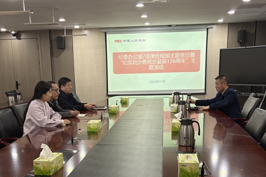 11月26日,人保财险宿迁市分公司纪委办公室/法律合规部党支部召开主题党日暨“纪念刘少奇同志诞辰126周年”主题活动。