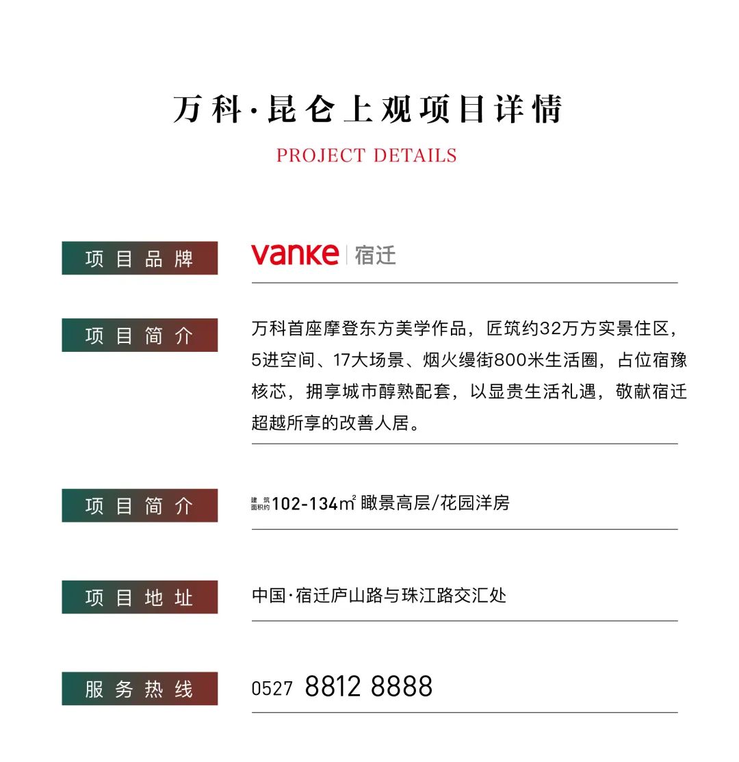 本项目推广名:万科昆仑上观,核准名:昆仑上观小区。本宣传资料为要约邀请,相关内容可能因政府规划调整、规范变化及开发商无法控制的原因发生变化,开发商保留对宣传资料随时更新、修改的权利,敬请留意最新资料。买卖双方的权利义务以双方签订的《商品房买实卖合同》(含附件)以及其他相关签约文件为准。开发商:宿迁万腾置业有限公司。发布时间 2023年3月。部分图片仅为示意,来源于网络。