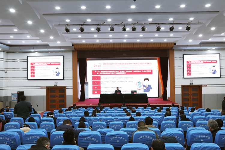 12月17日上午,泗阳县举行学习贯彻党的二十大精神专题培训班,省委宣讲团成员、省社科联党组书记、教授张新科进行专题宣讲。县委书记马伟,县委副书记、县长范德珩参加培训班。