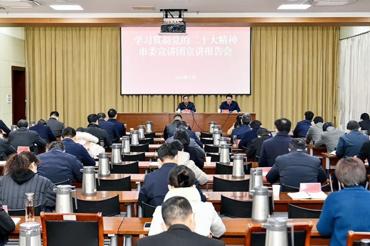 12月15日上午,市委宣讲团成员、市人大常委会副主任、市洋河新区党工委书记冯如意在市洋河新区宣讲党的二十大精神。区党工委副书记、管理办公室主任姜海青主持会议并就贯彻落实本次会议精神在会上讲话。