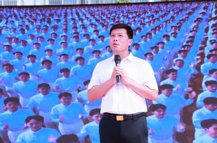 大会开始前,泗洪育才启明学校党支部书记、校长韩文峰同志站在操场上,为同学们详细介绍了反法西斯战争的历史背景。他深情地讲述着那段艰苦卓绝的岁月,让同学们深刻认识到和平的来之不易,教育孩子们要爱国爱家,传承先辈们的精神火炬。