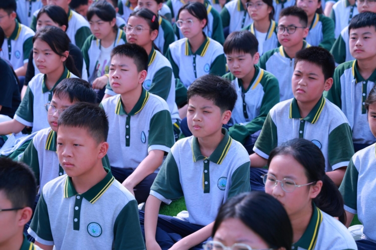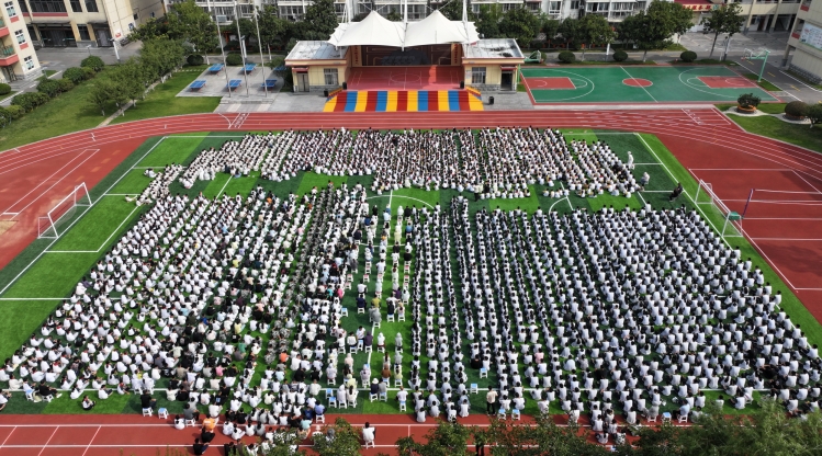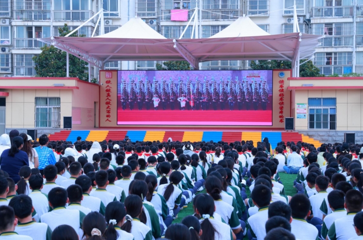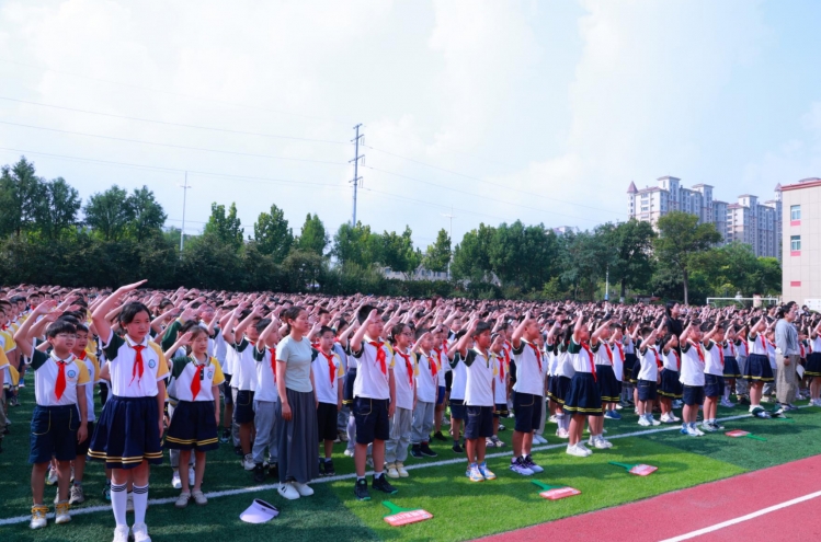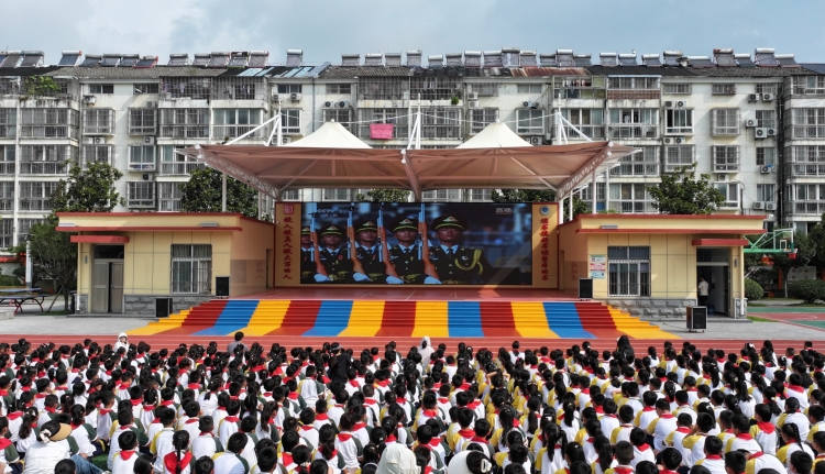 2025 年 9 月 3 日,泗洪育才启明学校全体师生齐聚操场,共同观看了“纪念中国人民抗日战争暨世界反法西斯战争胜利80周年大会”直播。