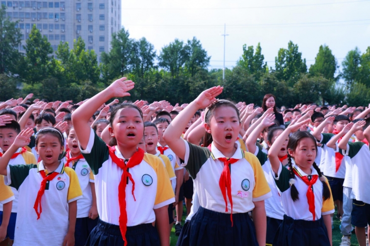 在天安门广场上空回荡起中华人民共和国国歌的庄严时刻,启明学校全体师生肃然而立,怀着无比崇敬的心情,引吭高唱,让激昂的旋律与澎湃的爱国热情在校园上空久久回荡。