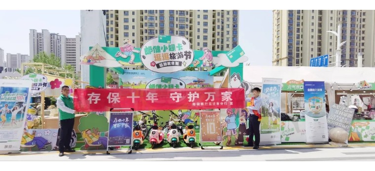 存保护航民生路,假日融情千户欢。在宿迁市宿城区吾悦广场、宿迁市金鹰国际广场,邮储银行宿迁市分行开展业务联合宣传活动,将存款保险宣传与“邮储小绿卡 逛逛文旅节”信用卡宣传活动结合到一起。将存款保险宣传与文旅优惠结合,吸引市民参与。当天,邮储银行在吾悦广场设宣传点,挂起“存保十年 守护玩家”宣传条幅,并现场摆放两张宣传海报,宣传人员身穿存款保险绿马甲,针对吾悦广场的进出市民开展存保宣传,守护万千家庭存款。