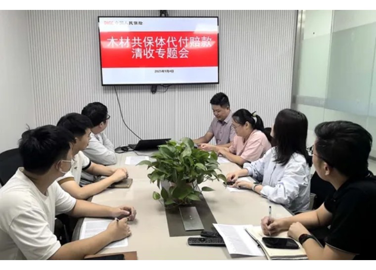 近日,人保财险宿迁沭阳支公司组织召开木材共保体代付赔款清收专题会。平安财险宿迁中心支公司、中华联合财保宿迁中心支公司、中国人寿财产保险宿迁市中心支公司、大地财险沭阳支公司等木材共保体成员单位的主要业务经办人员参会。