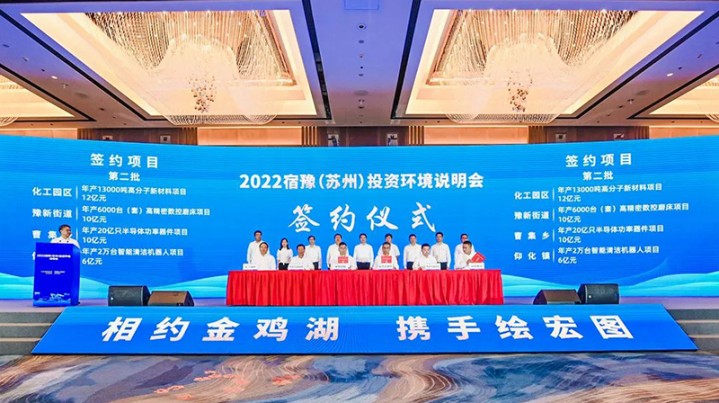 6月16日,2022宿豫(苏州)投资环境说明会在苏州成功举办。区委书记殷其国出席活动并讲话。宿迁高新区、张家港宿豫工业园区、宿迁化工科技产业园分别与相关企业签约项目12个,协议总投资102.5亿元。