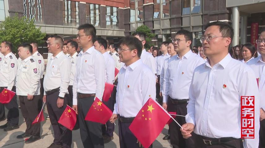当激昂的《义勇军进行曲》奏响,鲜艳的五星红旗冉冉升起、迎风飘扬,全体人员面向国旗肃立,行注目礼,齐声高唱国歌。