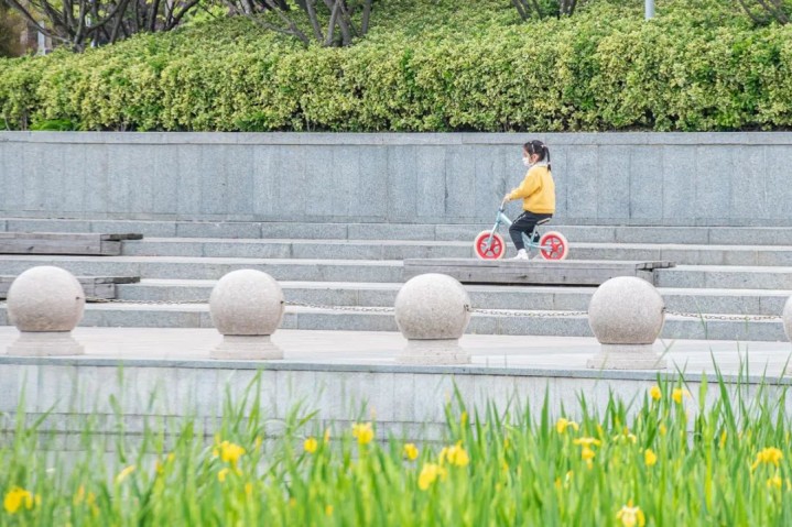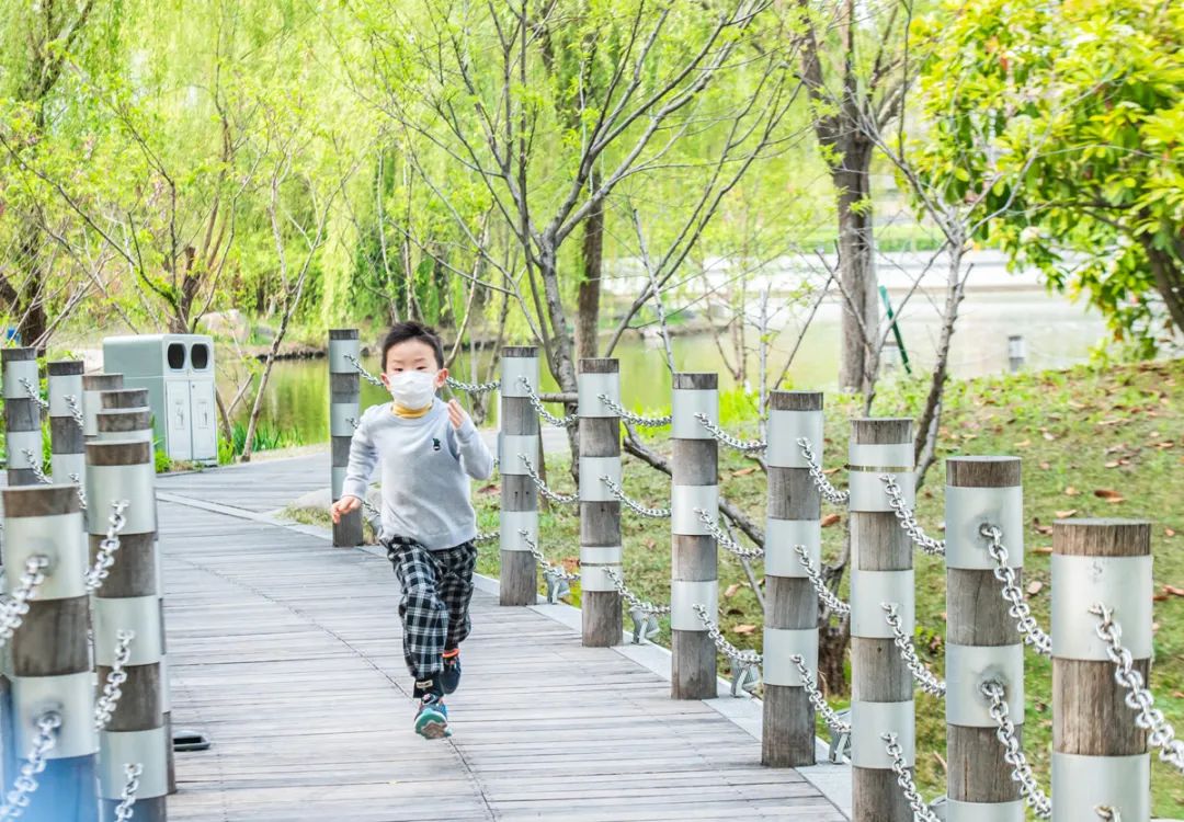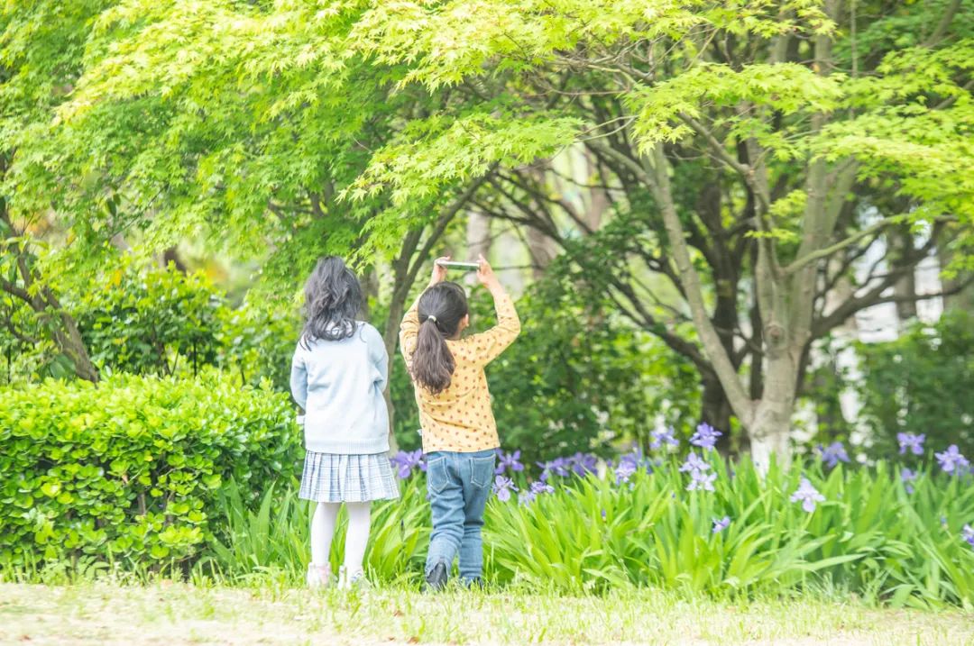 4月17日,苏宿工业园区苏州公园春意盎然,孩子们在大自然中乐享春天。