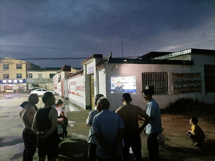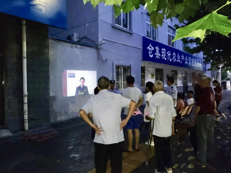 在反诈电影播放前,反诈民警通过投影设备把冒充领导、网络刷单、网络贷款、冒充客服、虚假购物等十类典型诈骗案例以露天电影的形式呈现出来,提醒辖区群众诈骗就在身边,不要有“贪占小便宜”的心理。