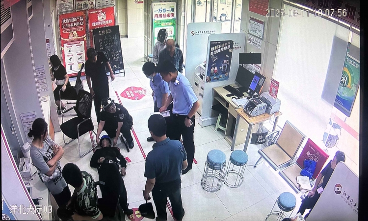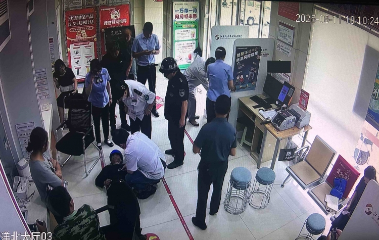 8月11日上午10时06分,民丰农商银行洋北支行营业厅内,一名正在办理业务的中年客户突发剧烈抽搐、意识模糊,身体失控倾倒,情况万分危急!