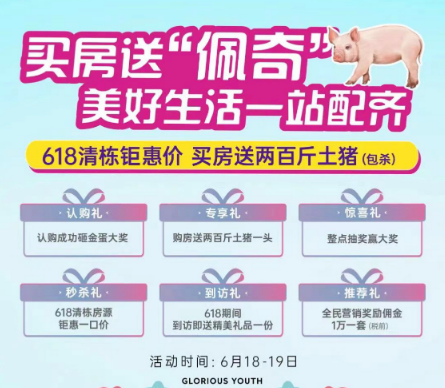 建业在河南开展小麦、大蒜换房活动之际,保利位于江苏连云港海州区的保利•水木芳华项目,日前则推出买房送一头200斤土猪,以及全民营销奖励1万元/套等活动。