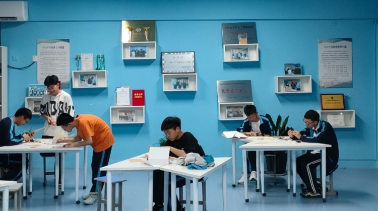 参赛小组在科技社团活动中心制作作品场景