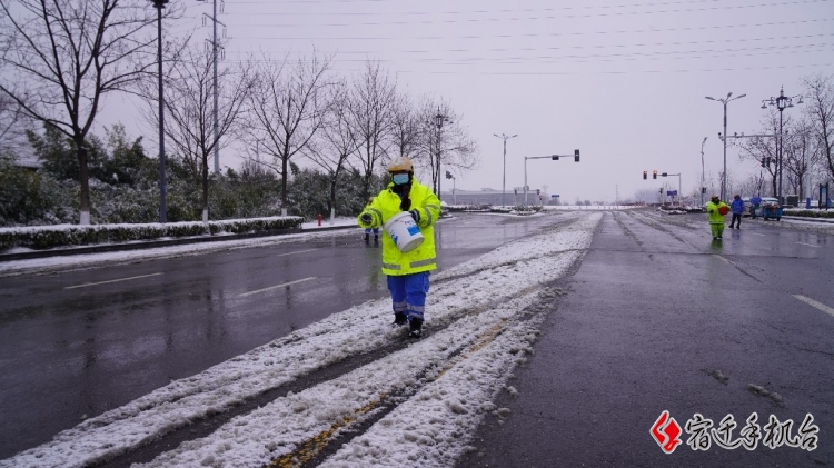 为了加快融雪速度,大家在清扫积雪同时还播撒融雪剂,保障道路通畅。