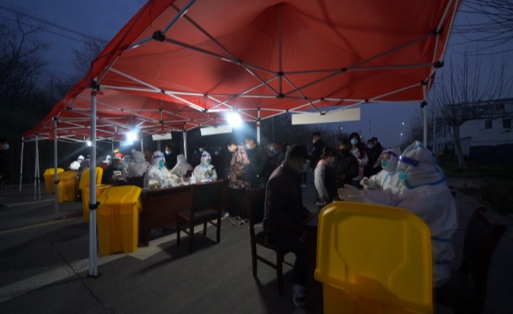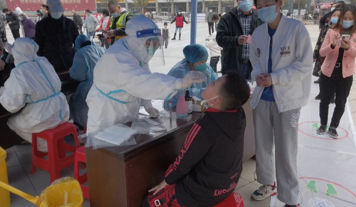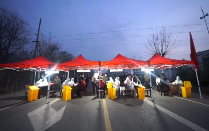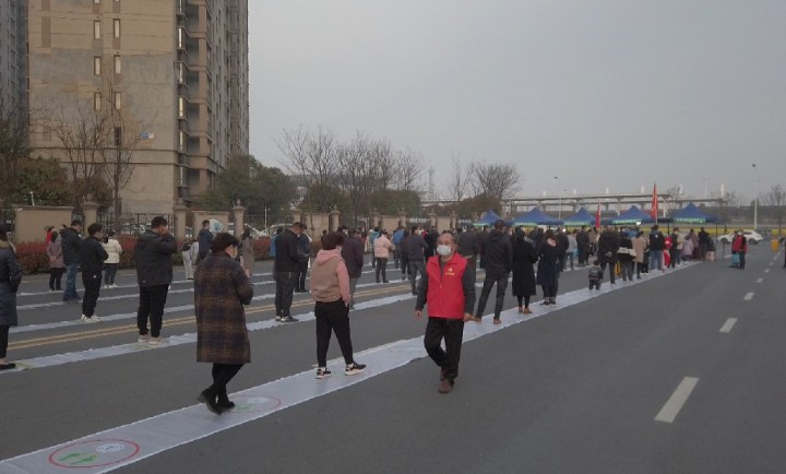 【出镜】记者 陈琦:我现在的位置是洋河新区梦都花园小区的西门口,现在的时间是上午5:40,虽然天还没有太亮,但我身后已经能看到小区的居民开始有序地排队,进行核酸检测。