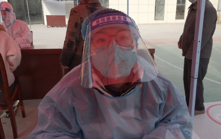 机关党员志愿者 赵娟:接到要核酸检测的通知,我们就在洋河待命,今天早上4点钟左右往这边赶,大概4点十几分的时候到村部的核酸检测地点。到现在(7:30)已经登记了300人左右,我们这边是4个人负责登记,(两个半小时)登记了差不多有一半的居民。