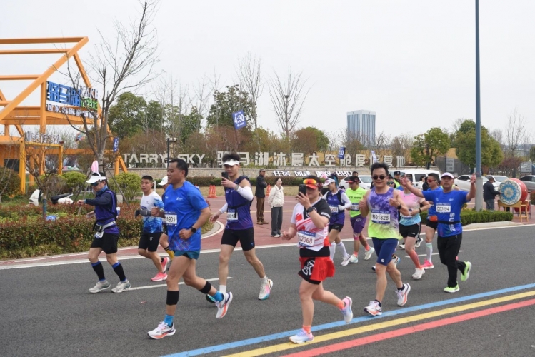 “加油,湖滨为你们呐喊!”“你们是最棒的!”……在湖滨新区马拉松赛道两侧,热情的志愿者和湖滨居民用最真挚的呐喊为选手们注入无限动力,充分展示了湖滨人的激情与活力。赛道沿途还精心设置了多个文化展演节点:通湖大道与骆马湖交汇处的舞狮表演虎虎生威,迎春大道与学成路交汇处的战鼓和舞蹈催人奋进,泽达学院百人啦啦队青春洋溢,罗曼园的舞龙表演气势如虹,学成路上湖滨海门实验学校京剧娃娃们神采飞扬……一个个独具湖滨文化特色的精彩节目轮番上演,不仅为赛事增添了浓厚的文化氛围,更不断振奋选手的参赛士气,激励他们在赛道上突破自我、创造佳绩。