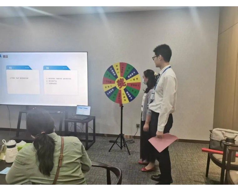 活动开始,兴业银行宿迁分行工作人员通过生动地讲解和案例分析,向参与者普及基础金融知识,涵盖消费者权益保护、储蓄理财、存款保险、防范电信诈骗、反洗钱等多个方面。为增强活动趣味性与互动性,现场特别设置了趣味答题环节,参与者们踊跃抢答,现场气氛紧张而热烈。答对问题的参与者,可转动幸运大转盘进行抽奖,奖品丰富多样,将活动氛围推向高潮。
