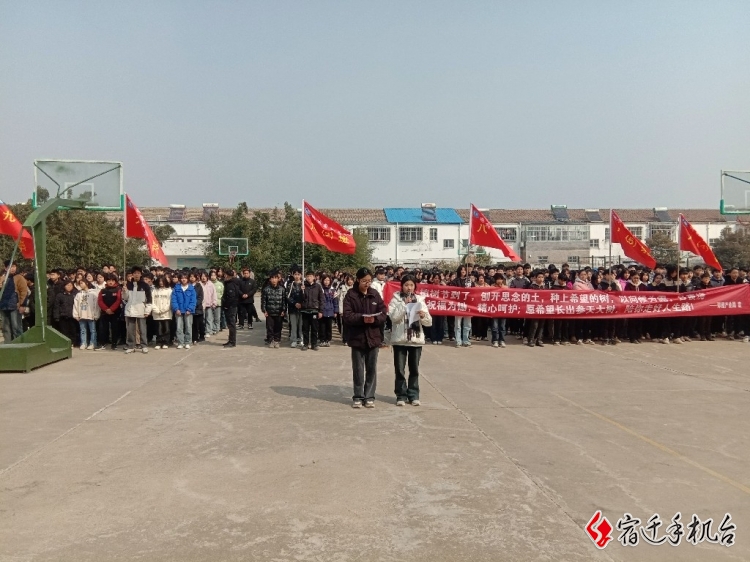 在郑楼实验学校,全校学生齐聚操场,大家宣誓倡导植树造林、绿化环境,决心以实际行动为洋河增绿贡献力量。