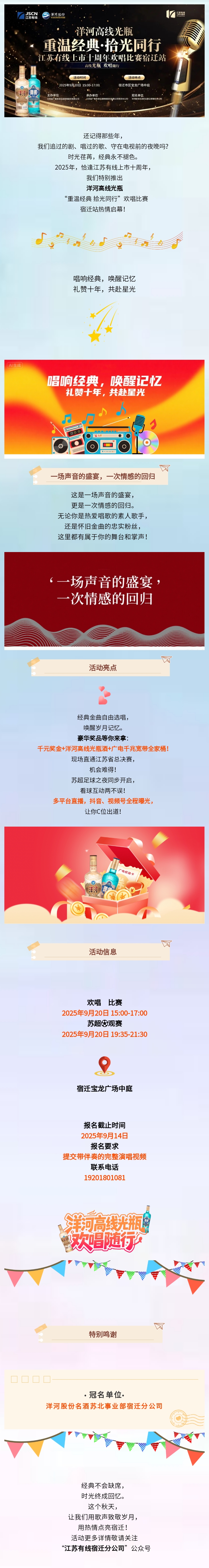 【重磅来袭】洋河高线光瓶“重温经典 拾光同行”江苏有线上市十周年欢唱活动宿迁站盛大开启!