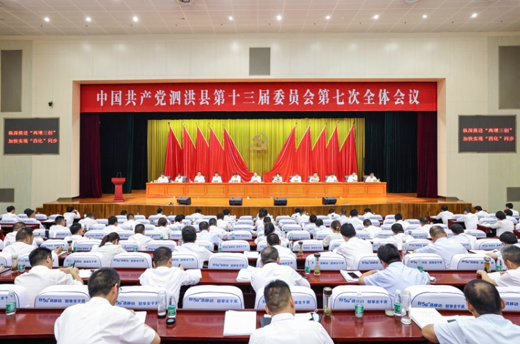 8月8日,中国共产党泗洪县第十三届委员会第七次全体会议举行。全会回顾总结上半年工作情况,研究部署下半年工作任务,动员全县上下全面落实“疫情要防住、经济要稳住、发展要安全”的重大要求,纵深推进“两增三创”,加快实现“四化”同步,奋力夺取“最富活力改革试验区”建设新成效。会议由县委书记杨云峰主持,并受县委常委会委托作主题报告;县委副书记、县长耿晓云就经济工作作具体部署。