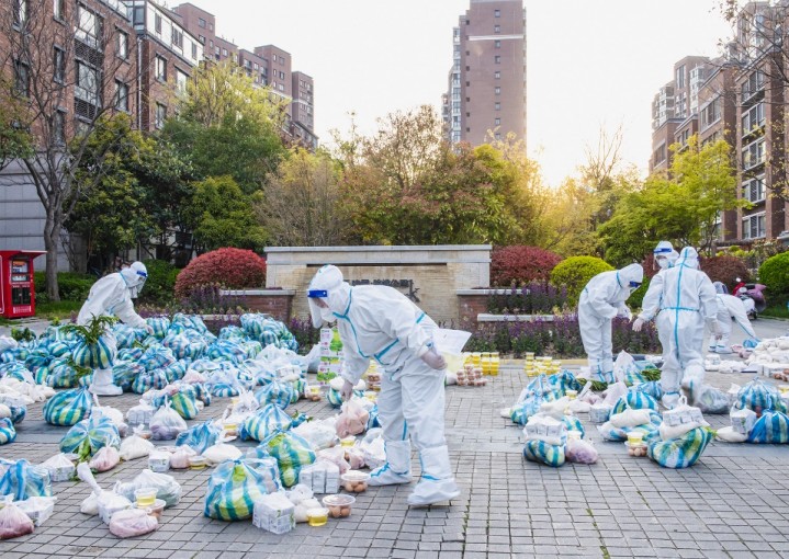“吴姐,您最近几天的菜品给您放门口了,您还有什么需要,随时告诉我们。”4月4日,苏宿工业园区社区工作人员为辖区内居家健康监测人员免费送去生活必需物资。