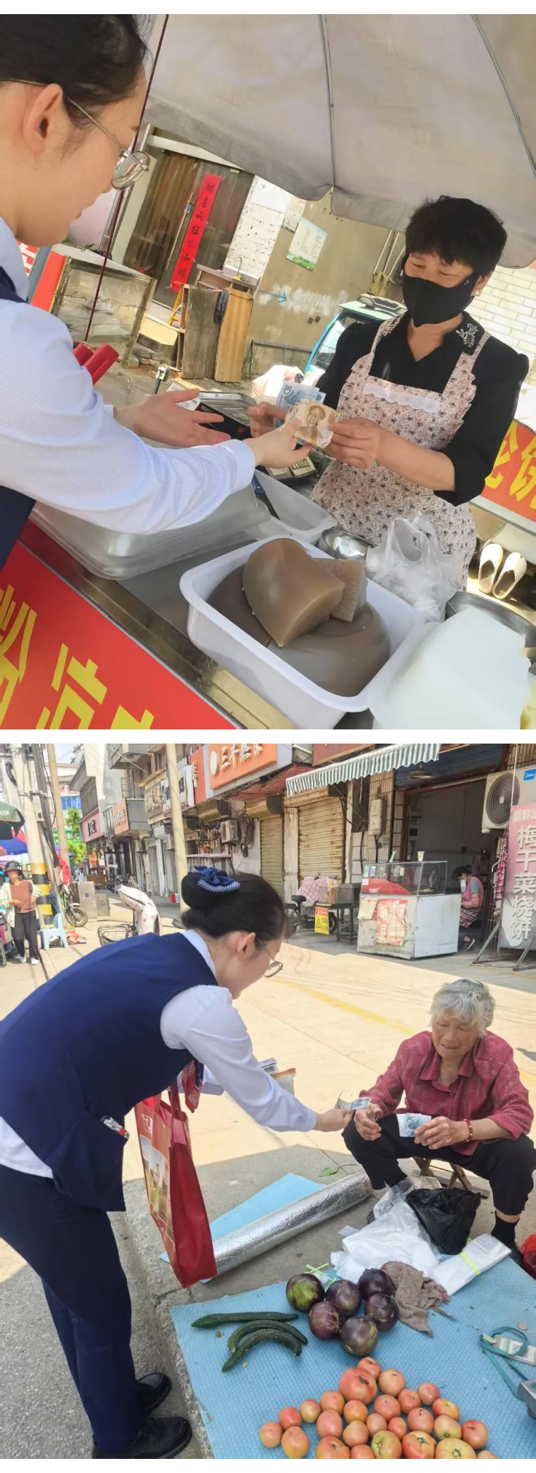 交通银行宿迁洋河支行积极组织工作人员走进菜市场、商贸超市、重点商圈,面对面向居民、商户介绍如何提升人民币整洁度、不宜流通人民币标准、残缺污损人民币兑换办法、新版人民币的防伪知识鉴别等金融知识,并现场提供残损人民币兑换服务。