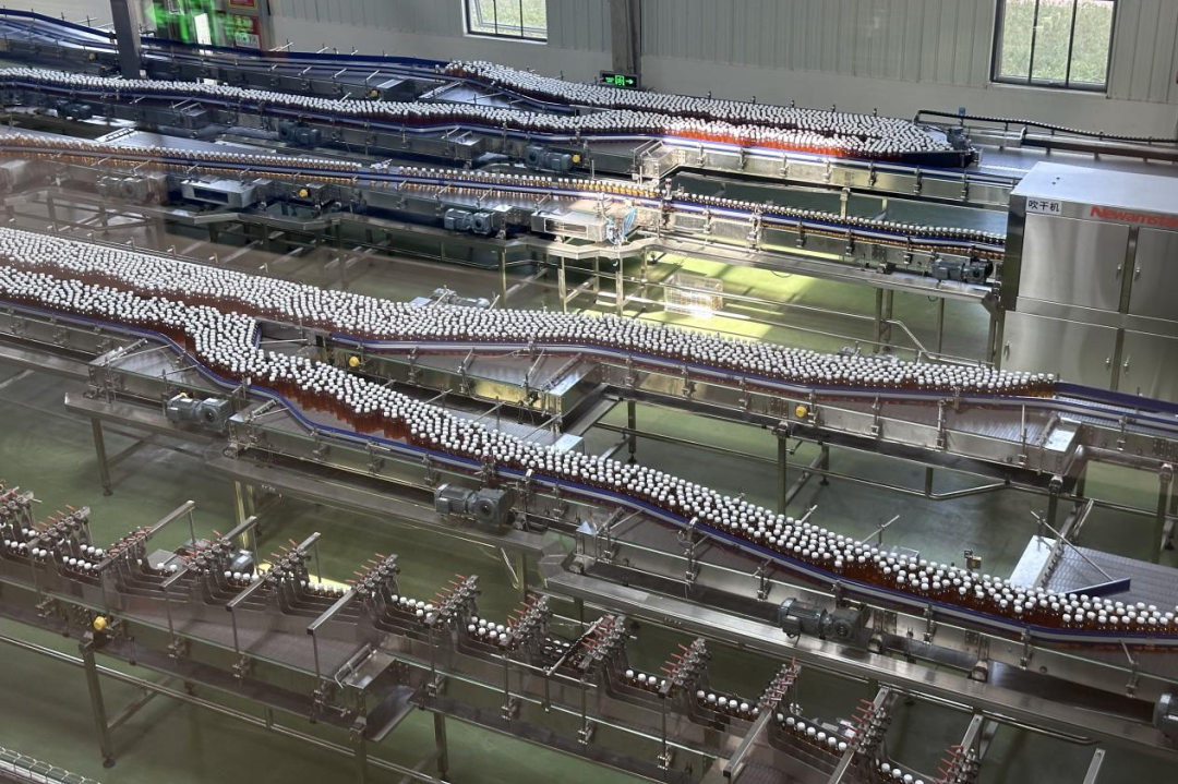 图为园区内的无菌茶饮料生产线