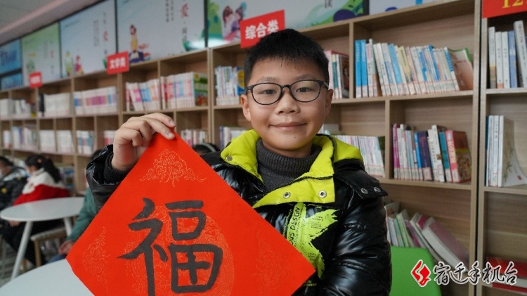 刚刚呢,老师叫我们写福字。在新的一年里,我希望把福字带回家,给全家都带来好运气。