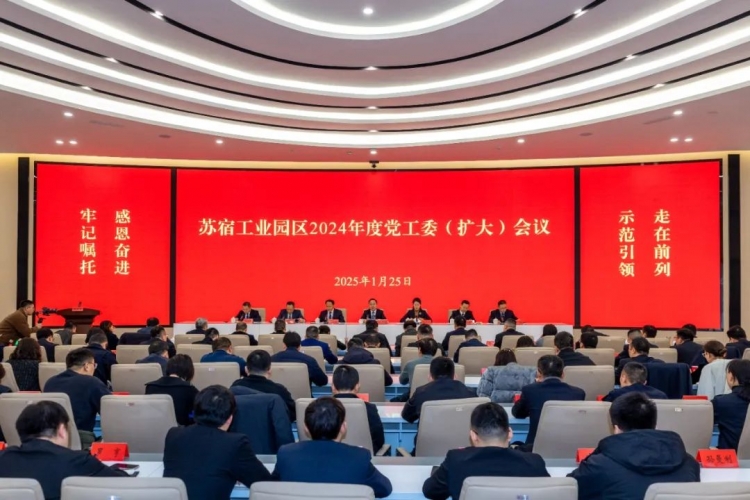 1月25日,苏宿工业园区2024年度党工委(扩大)会议召开,总结2024年工作,分析当前形势,部署2025年重点工作任务。副市长,苏宿工业园区党工委书记、管委会主任王国荣出席会议并讲话。会议强调,园区上下要坚持以习近平新时代中国特色社会主义思想为指导,全面贯彻党的二十大和二十届二中、三中全会精神,按照中央、省和苏州宿迁两市、苏州工业园区相关工作要求,牢记嘱托感恩奋进、示范引领走在前列,锚定“区域联动发展样板区、新质生产催生引领区、开放创新改革示范区、品质生活向往首善区”目标,加快建设“产业高地、创新高地、营商高地、宜居高地”,努力把园区打造成为更高水平展现共同富裕光明前景的重要窗口。