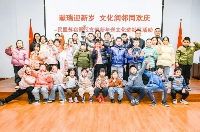 1月18日,民盟宿迁市苏宿园区直属支部在明日社区开展“金蛇献瑞迎新岁 文化润邻同欢庆”新年送文化进社区活动,吸引60余位居民参与。