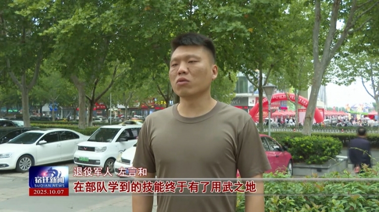 10月1日,在沭阳县“迎中秋·庆国庆”2025大型企业用工招聘会现场,求职者认真咨询,企业热情推介,现场气氛热烈。退役军人左言和一早就来到会场,很快找到了心仪的岗位。