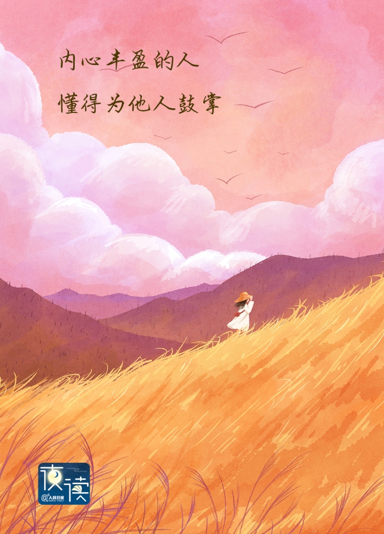正如一位作家所言:“你对我的百般注解,不构成万分之一的我,却是一览无余的你。”一个内心丰盈的人,懂得为他人鼓掌,大方承认他人的优秀。