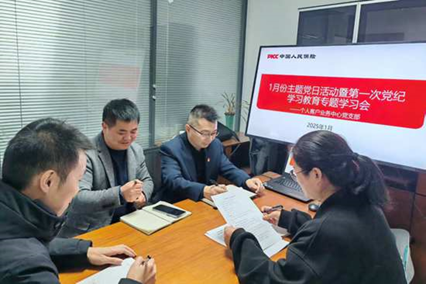 1月22日,人保财险宿迁市分公司个人客户党支部组织全体党员召开党员大会暨“重温党纪,警钟长鸣”主题党日。