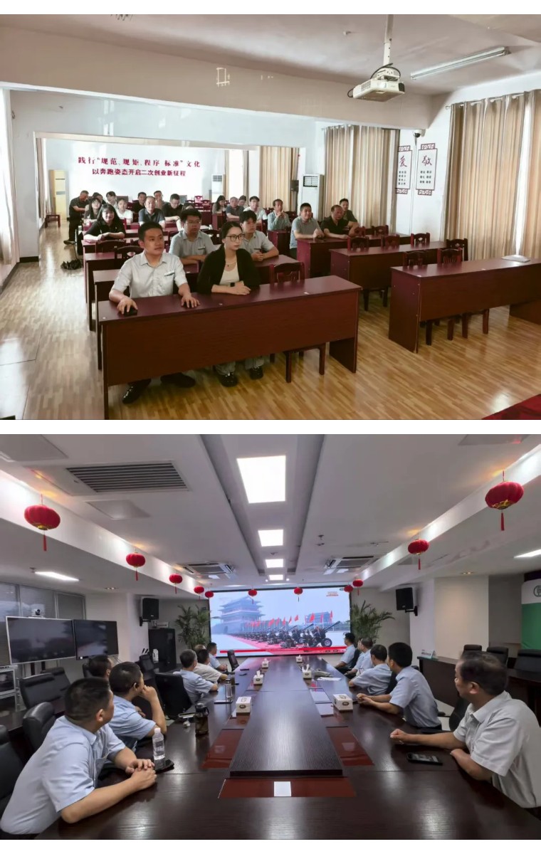 当天上午,农业银行宿迁分行及辖属四家一级支行同步启动集中观看活动。农业银行宿迁分行党委班子成员、党员干部、员工代表身着行服,党员佩戴党徽,聚精会神地观看九三阅兵现场直播。红旗猎猎,步伐铿锵,铁甲滚滚,战鹰翱翔……大家目不转睛,生怕错过每一帧画面,不时为受阅队伍的精彩表现发出赞叹,眼里满是对祖国的自豪与崇敬。