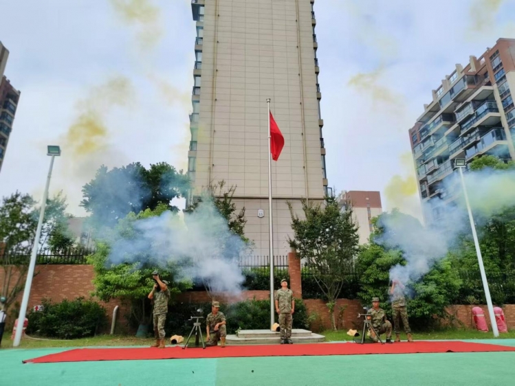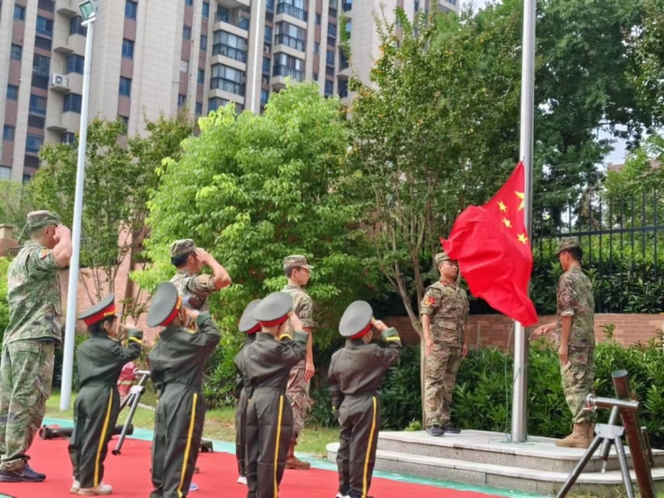 幼儿园特邀退伍军人为孩子们升国旗,伴随着激昂的进行曲响起,英姿飒爽的队员们迈着整齐的步伐,身姿挺拔,孩子们唱着洪亮的国歌向国旗行注目礼,看着五星红旗冉冉升起,这一刻,爱国之情油然而生!
