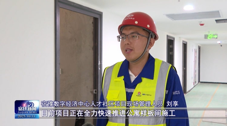 “目前项目正在全力快速推进公寓样板间施工,其余公寓样板现场正在进行放样、放线,准备装修材料和人员,确保项目于12月底前投入使用。”宿豫数字经济中心人才社区项目现场管理人员刘享说。