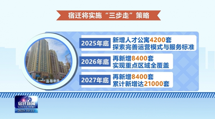 为增强人才公寓供给的灵活性与针对性,《推进人才公寓建设三年行动计划(2025—2027)》强调应科学规划供给,统筹考量区域产业布局、市场趋势和未来发展需求,合理确定人才公寓建设与配置。根据《计划》,宿迁将实施“三步走”策略:到2025年底,新增人才公寓4200套,探索完善运营模式与服务标准;2026年底再新增8400套,实现重点区域全覆盖;至2027年底,再新增8400套,累计新增达21000套,推动人才公寓供给与产业发展、人才引进深度融合,构建层次清晰、功能完善的人才安居体系。