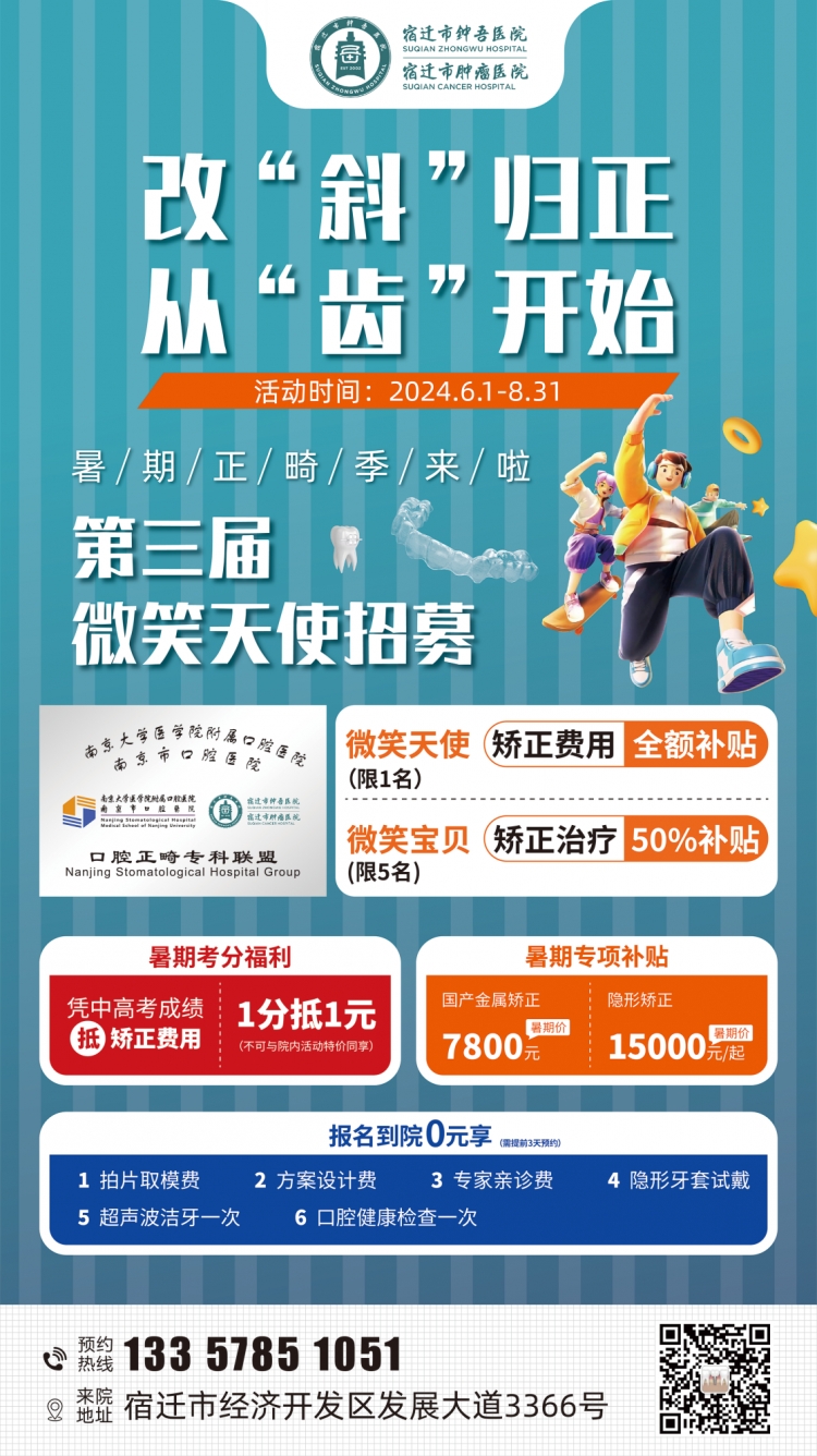 同时,宿迁市钟吾医院口腔科与南京大学医学院附属口腔医院南京市口腔医院达成口腔正畸专科联盟。期间携手南京多位资深正畸医师,大力打造宿迁地区特色正畸医师队伍。特邀资深正畸医师不定期坐诊,始终紧跟国际发展前沿的优质矫治技术。